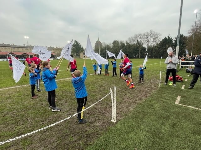 This Saturday Littlemore RFC minis were invited to wave the flags and usher the Oxford Blues and the potential future players for the England national team, as Oxford blues took on the England U20 at the Iffly road rugby ground in front of an approx 2000 strong crowd.