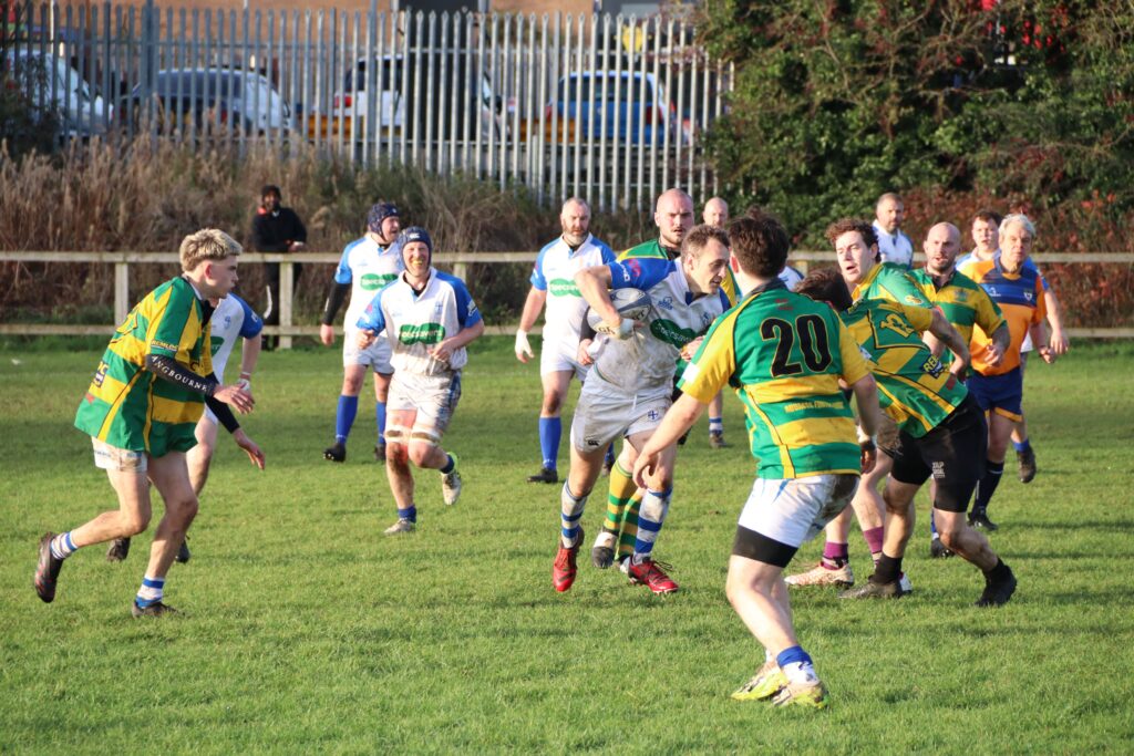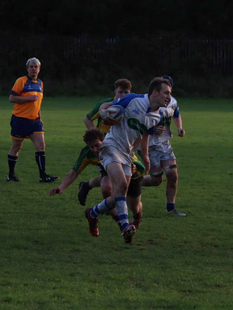 Dave Lammin bagging himself a brace of tries to stretch the lead late on. Nathan Adams (centre) showing off some fancy footwork to outsmart his opposite number for a try, and also sharing kicking duties with (wing)George Pride who also found his way over the whitewash for a try himself.