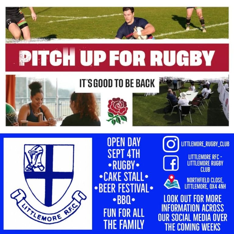 Saturday 4th September from midday. Littlemore rugby club in oxford, is hosting an Rfu promoted open day at our ground in Littlemore. we use the state of the art grounds of the oxford academy and access if via our club house on Northfield road.