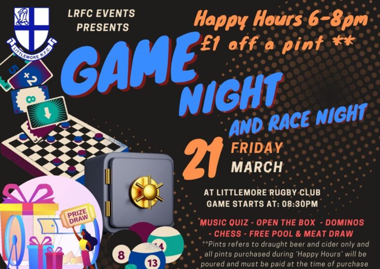 Plus this games night we will be doing a Race night. come along and have a flutter on the horses.
