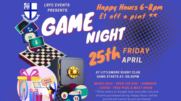 Games night in the club, Friday 18th we will have Happy hours 6-8pm with £1